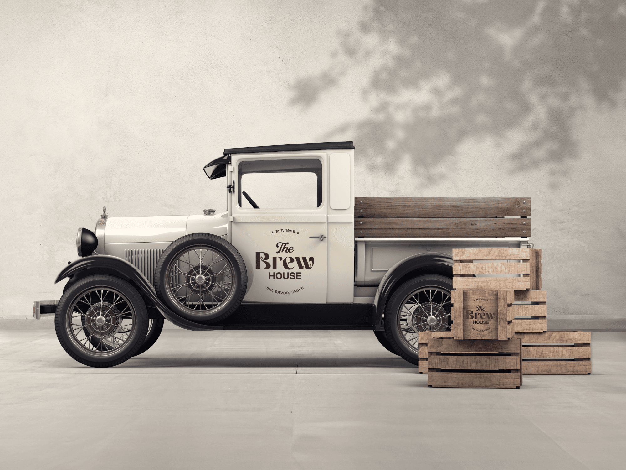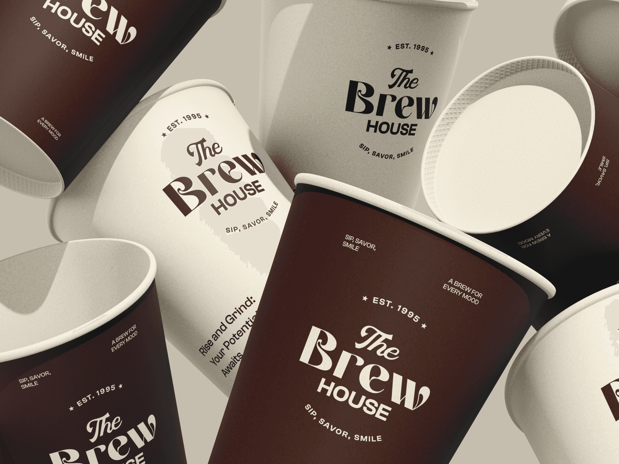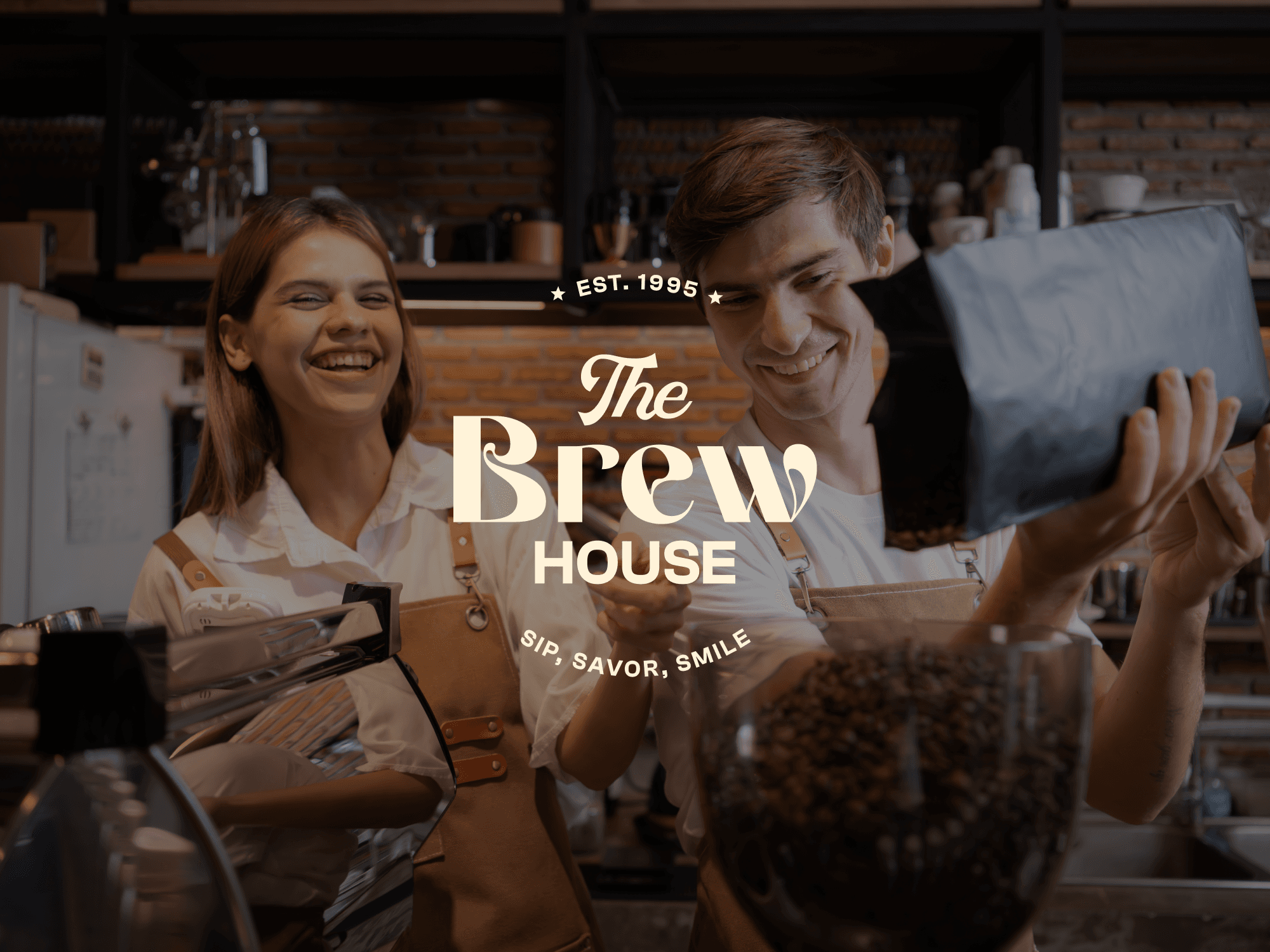 The Brew House - A cozy café branding project with a classic logo and warm visual identity, designed to create an inviting atmosphere for coffee lovers.